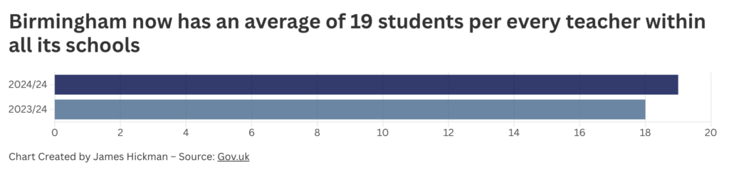 Last academic year, Birmingham’s schools had an average of one teacher for every 19 students, according to new government data.