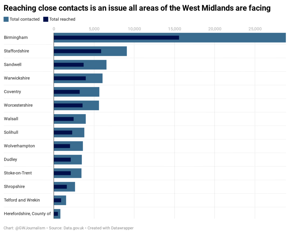 In Wolverhampton, just 56% of close contacts were reached as well as only 57% in Sandwell.