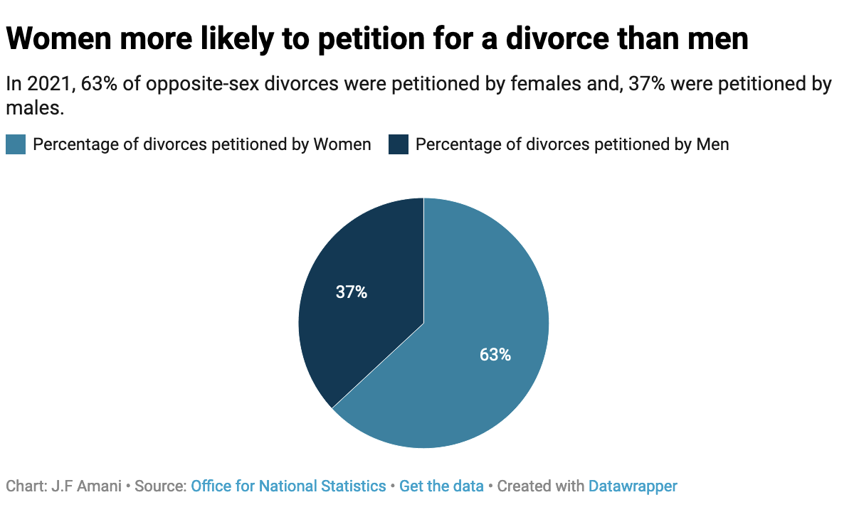 Women are more likely to petition for a divorce than men in opposite-sex marriages, according to the latest data from the Office for National Statistics (ONS). In 2021, women petitioned for 63% of divorces in England and Wales in opposite-sex marriages and men made up the other 37% of divorces. These results are similar to […]