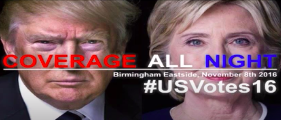 Birmingham Eastside brings you the results of the US Presidential Election results as they unfold. On November 8th, you can find us at birminghameastside.com for a live-blog and from 11pm join us for the first of two live-streams.